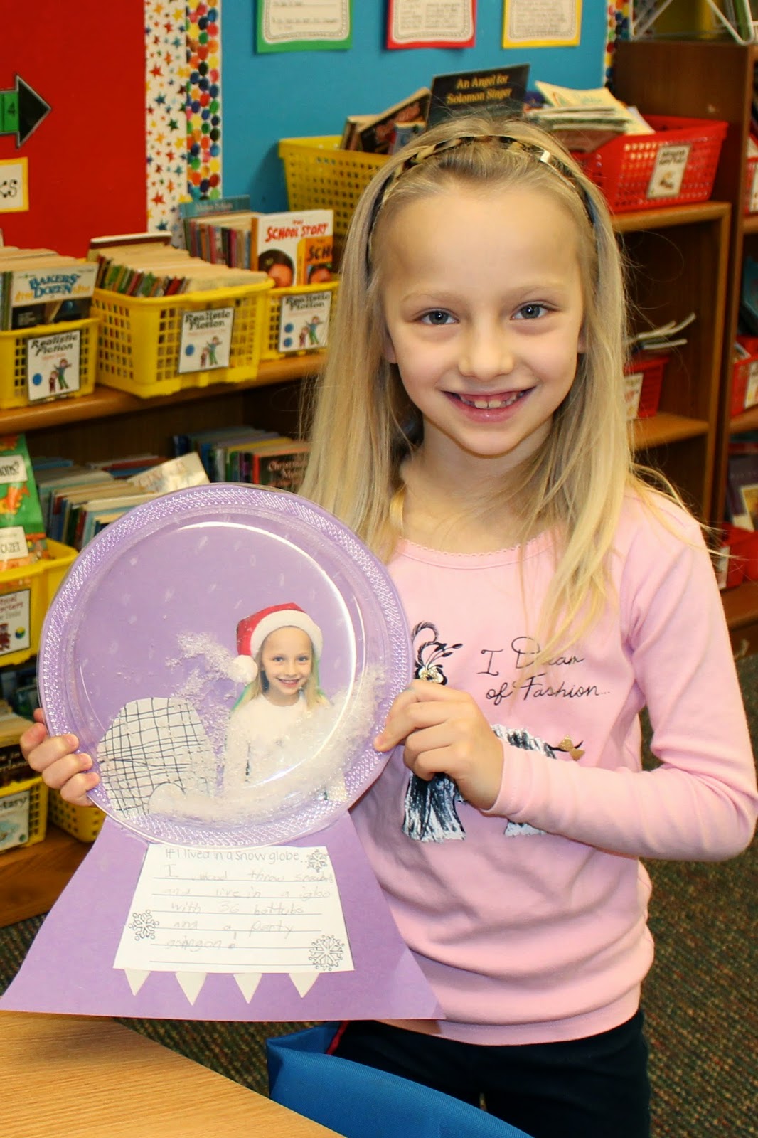 Students made a really cool snow globe craft with a photo of themselves on the inside! |
